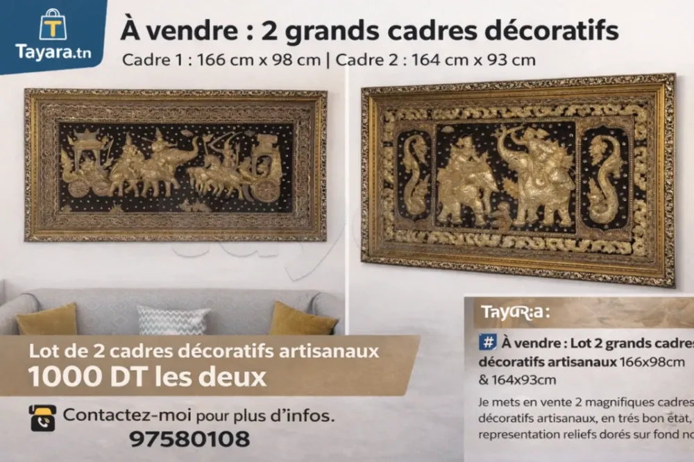 2 grands cadres décoratifs artisanaux – Style asiatique doré