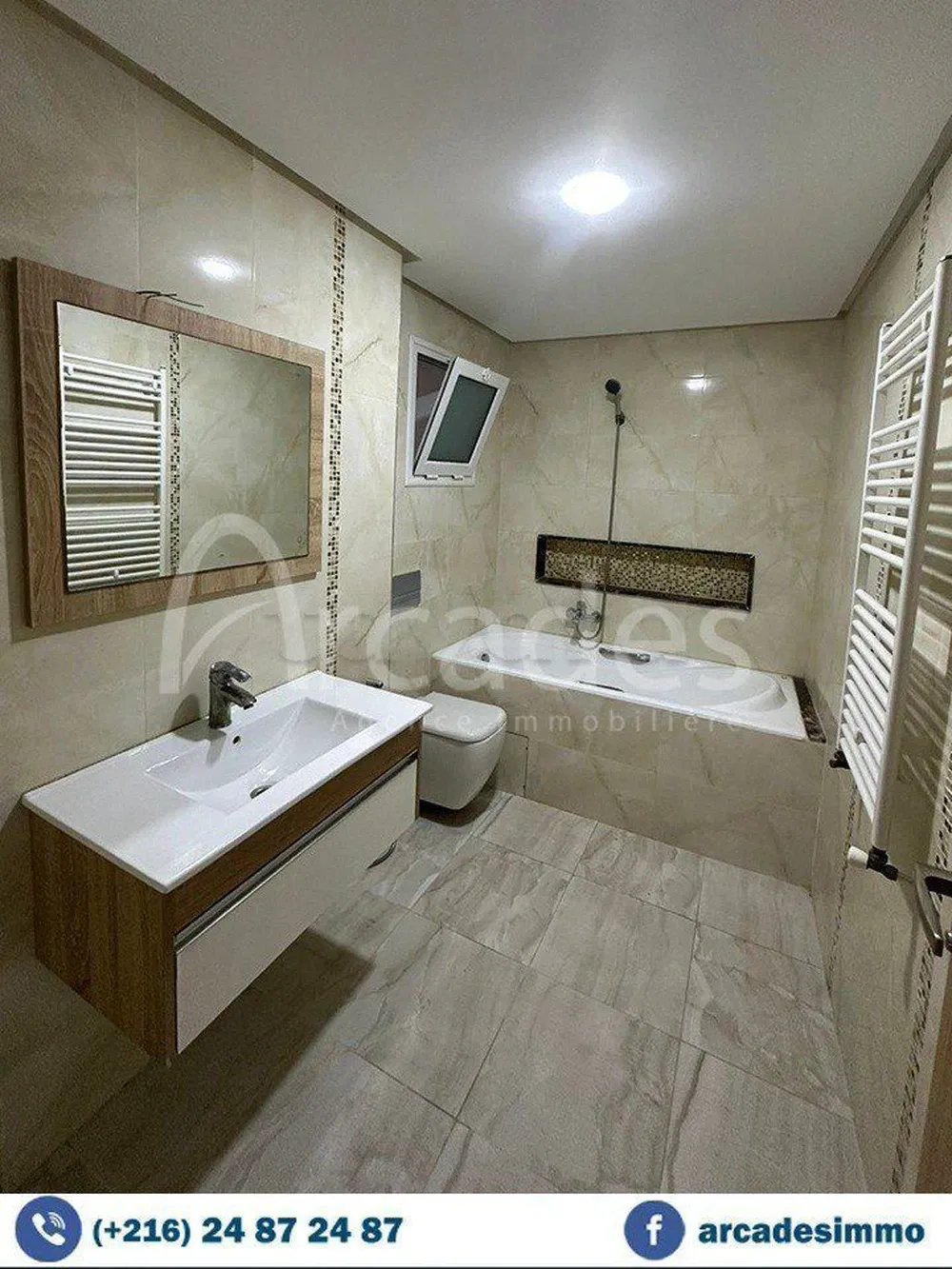Agence Les Arcades Immobilière met en vente un appartement haut standing , de typebs+3 ,situé dans une résidence avec ascenseur a cité el omran Monastir.