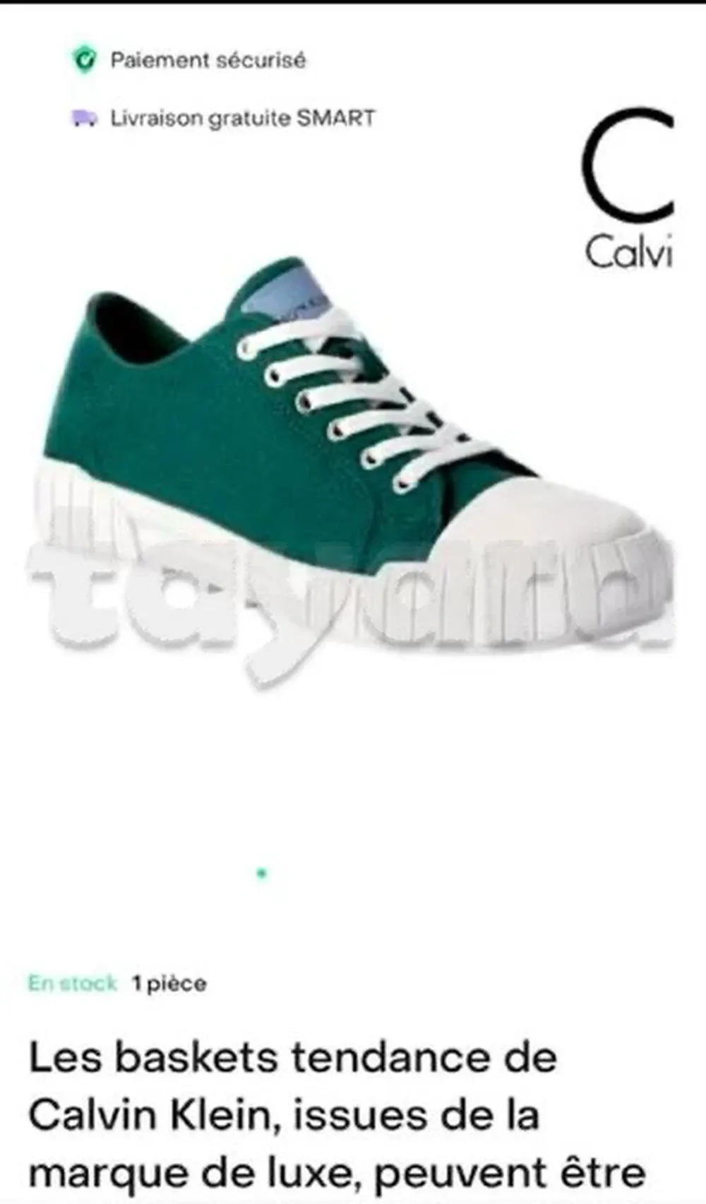 une paire de baskets Calvin Klein jeans acheter à Galeries Lafayette Beaugrenelle à Paris erreur de pointure à vendre pour 260dt seulement tel 23721114