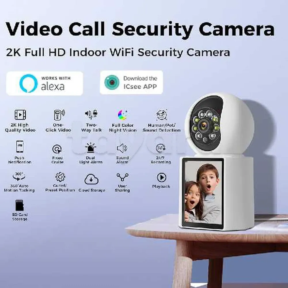 Caméra de visioconférence intelligente WiFi avec écran IPS de 2,8 pouces, conversation vidéo bidirectionnelle, caméra sans fil 1080p