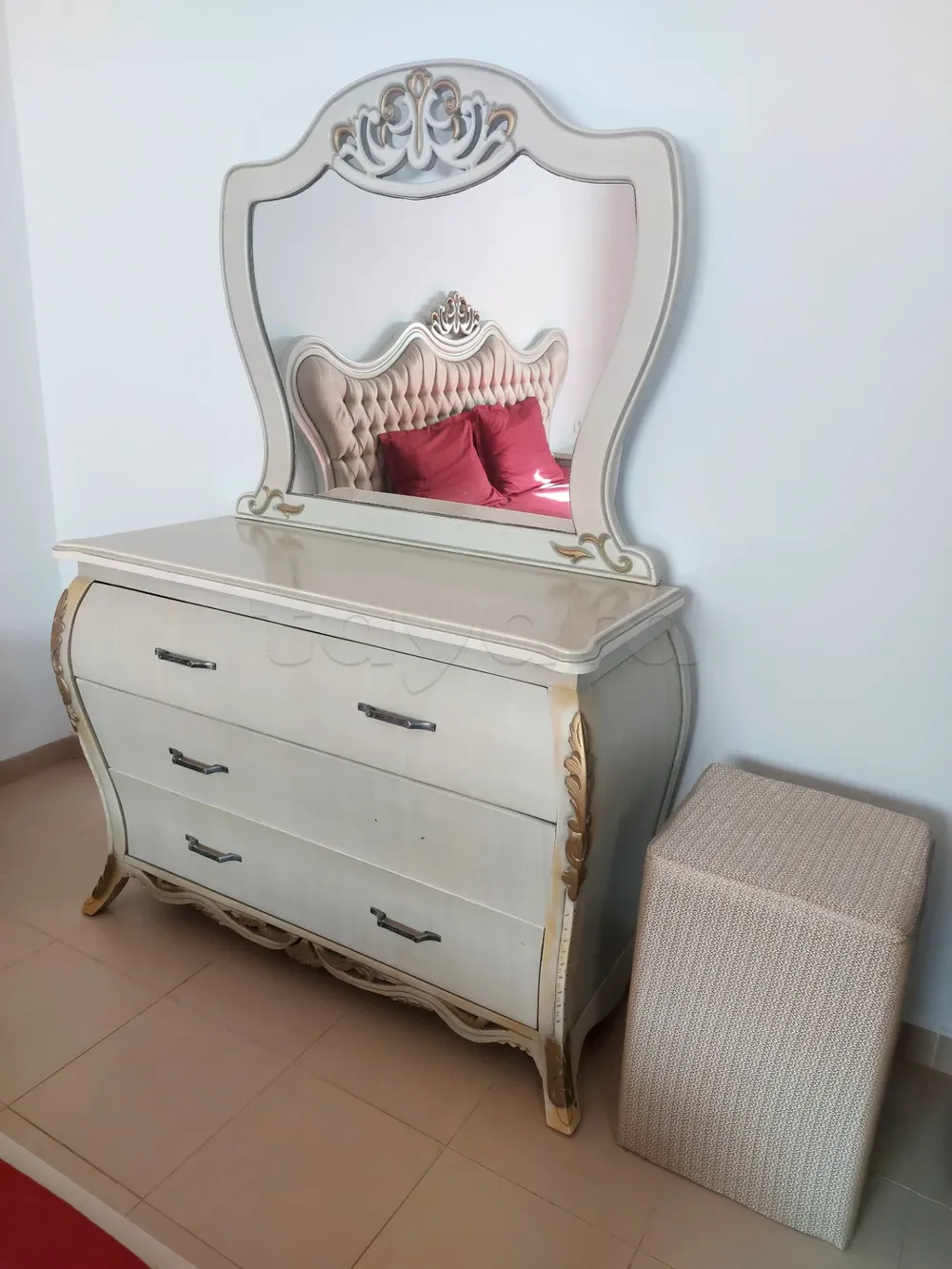 Une coiffeuse à 3 tiroirs + pouf