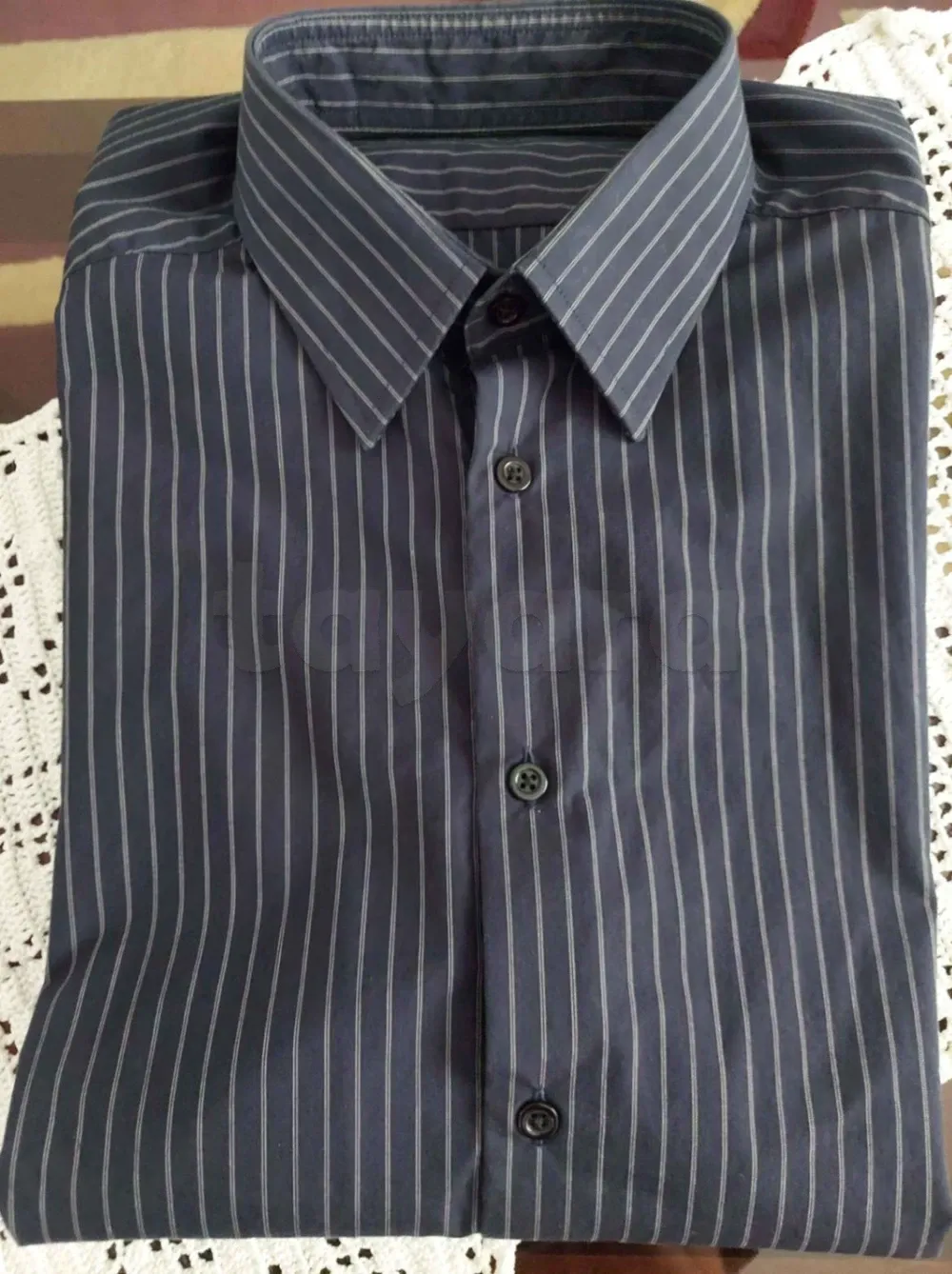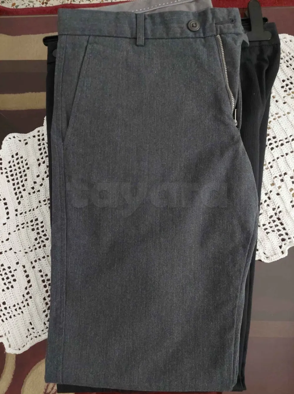 Neuf jamais porte a vendre 2 beau pantalons taille 42 noir et gris et 2 belles chemise taille L une noir raille blanc et une noir raille bleu.