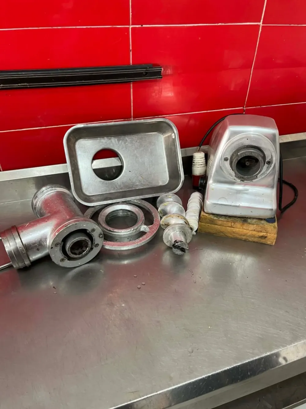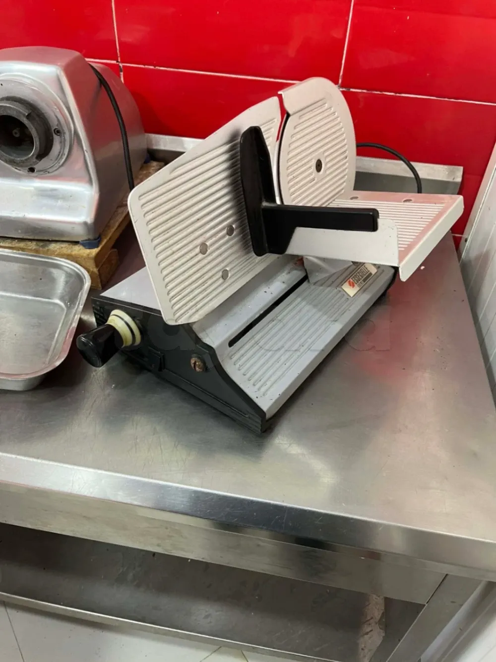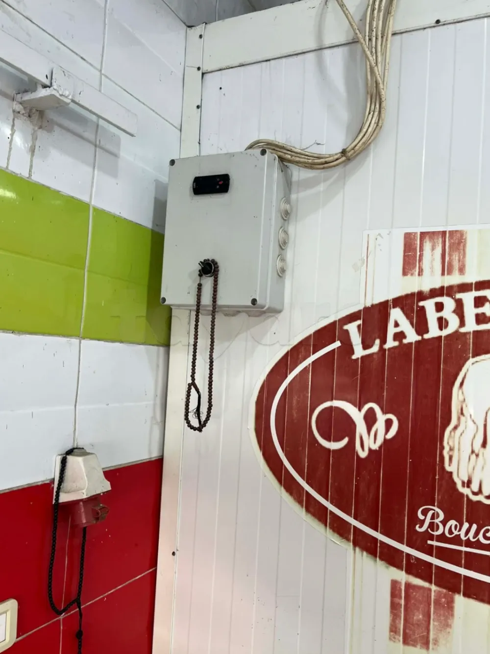 Matériel Boucherie, chambre froide 4m/1,5m , table inox alimentaire deux étages 3 m . hachoir de viande 32 . puce-oir merguez . Trancheuses salami . deux vitrines 2,2m + 1m . 9ardha bonda9 . Bascule Dibal