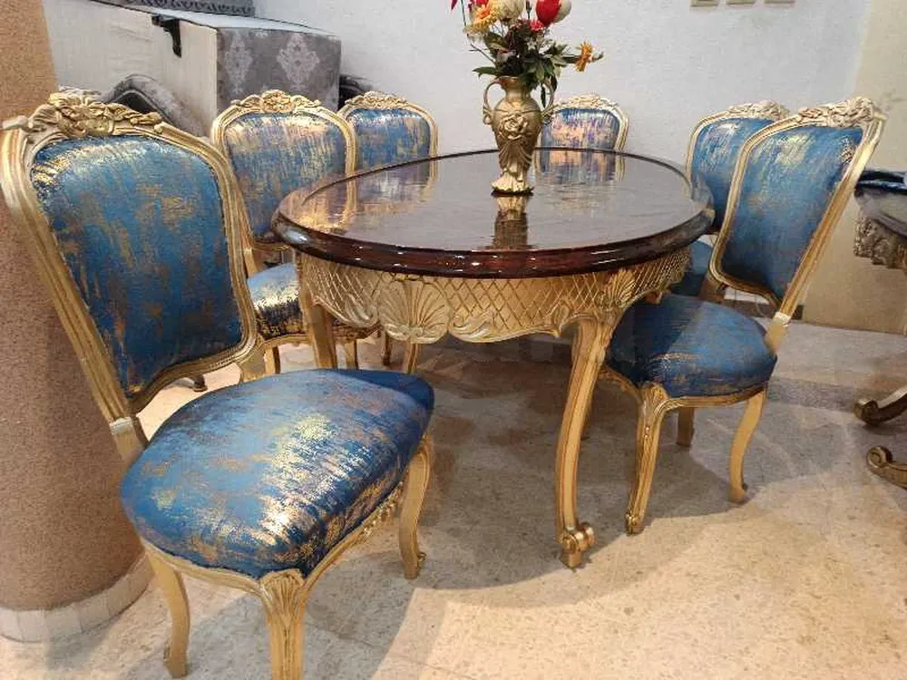 salle a manger style Louis 15 bois blinz 6 chaises retapé de nouveau