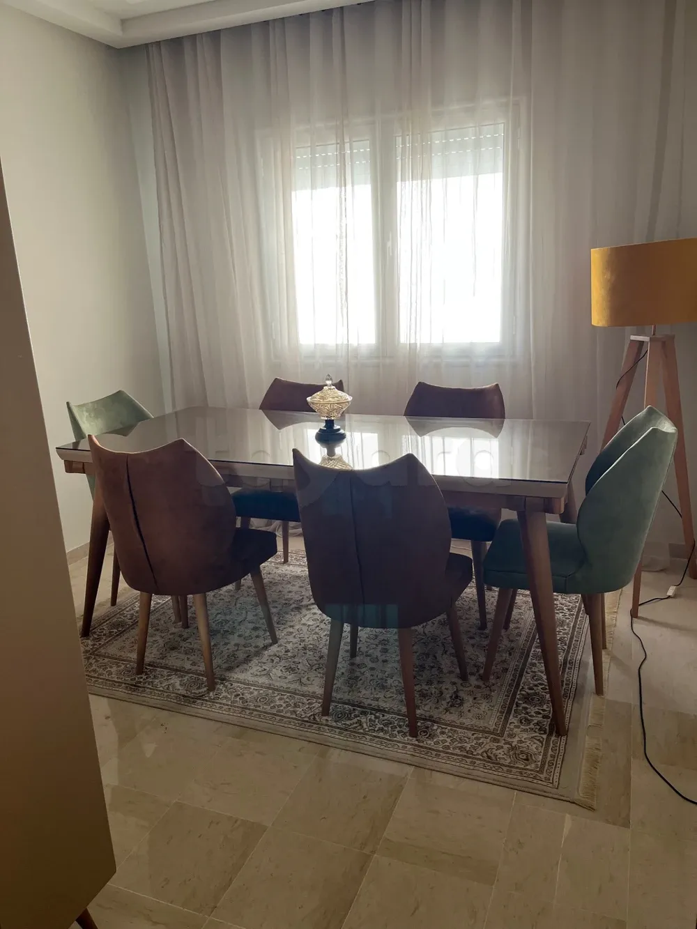 Table et 6 chaises avec argentier et tapis