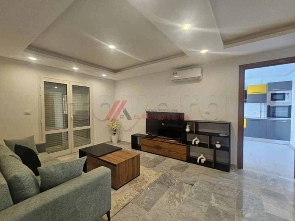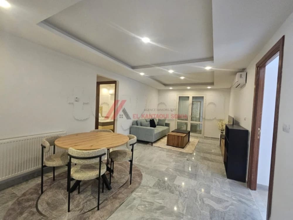 Agence Immobilière Kantaoui Sonia met en location annuelle un appartement meublé de type S+2 tout neuf à Sahloul dans une résidence sécurisée et bien gardée et prés de tous commodités