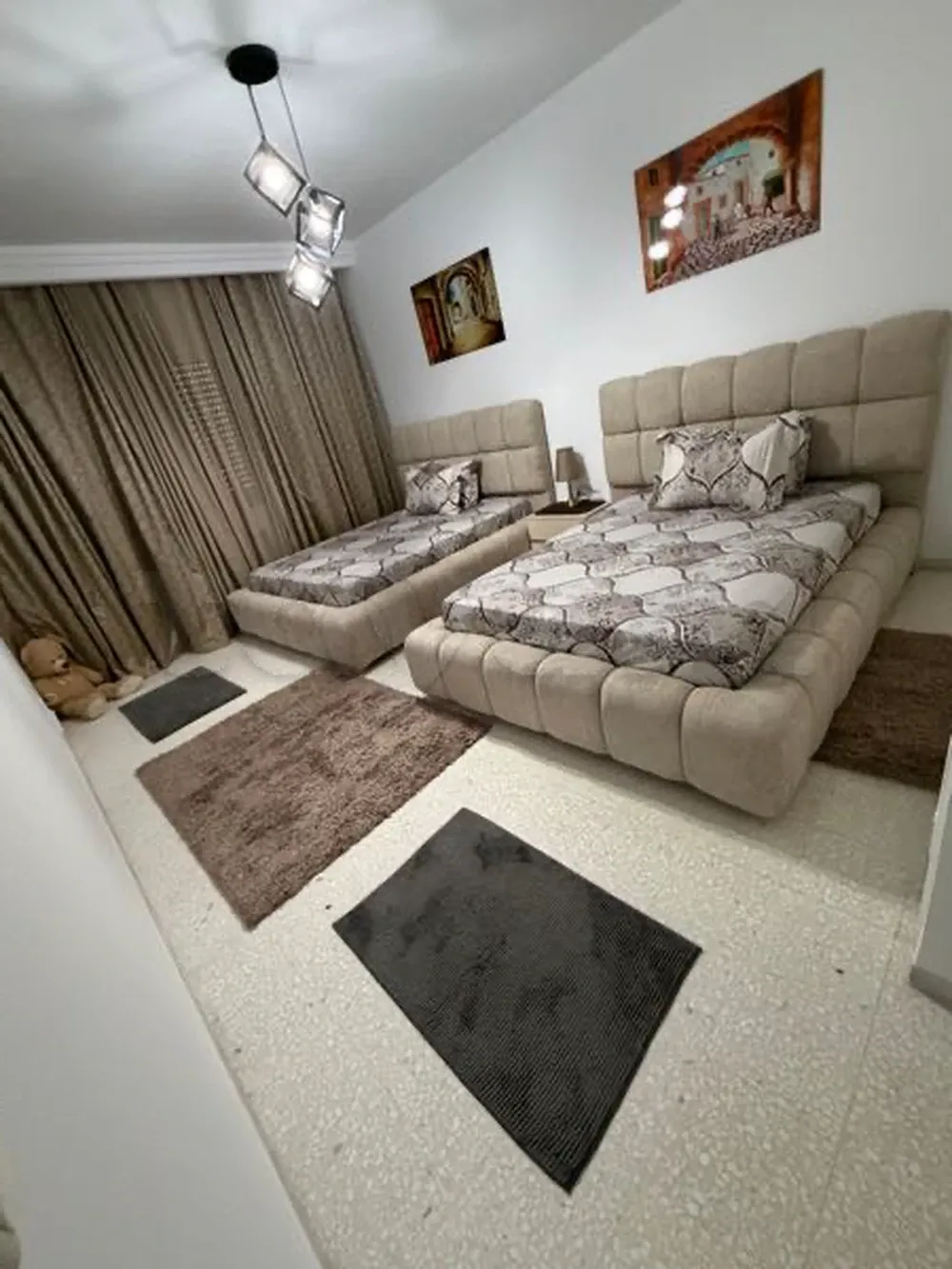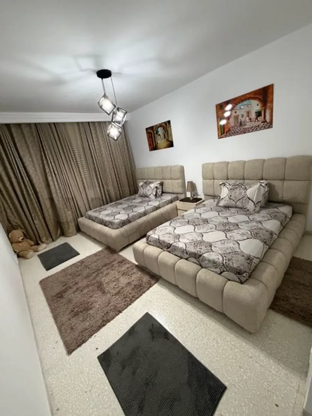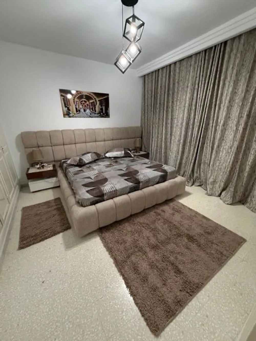 à louer à ennasr2 appartement s2 meublé lux emplacement idéal en face grand Monoprix résidence calme et sécurisé vue panoramique sur grand Tunis meuble neuf salon salle a manger 2 chambres à coucher cuisine équipée salle de bain et salle d’eau chauffage central 3 clim wifi ext.. place de parking prix 250 dinars par jours tel 25666888