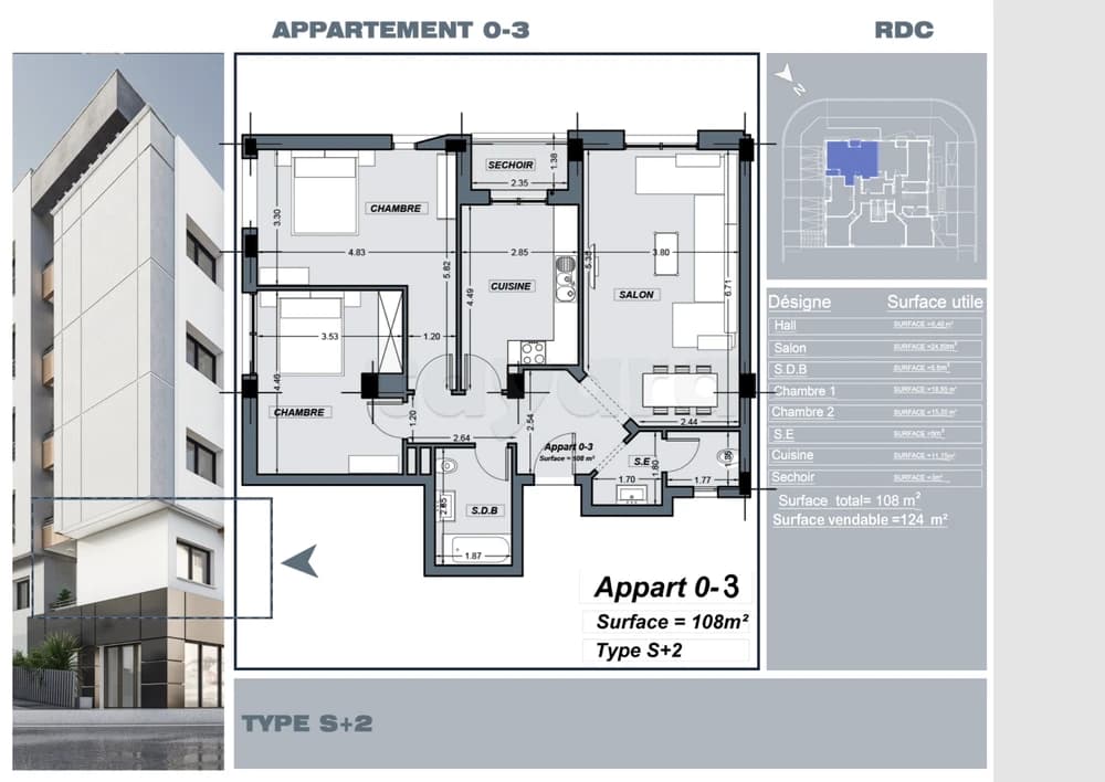 Appartement RDC | S+2 | 108 m²