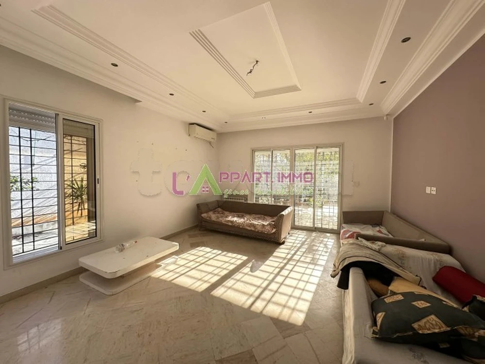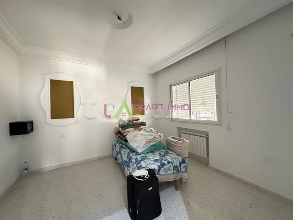 Cette maison indépendante se situe dans un quartier calme à Boumhel. Elle se compose d'un salon avec accès à une grande terrasse, deux chambres à coucher dont une suite parentale avec dressing et sa propre salle d'eau avec cabine de douche, une cuisine bien aménagée de rangements pratiques et fonctionnels et équipée par une plaque, hotte et une salle de bain. Elle est équipée par un chauffage central et deux climatiseurs. A l’extérieur, un beau jardin bien entretenu complète cette demeure et fait le tour de la maison. Une entrée de voiture peut aisément contenir quatre voitures, une pièce extérieur à multiple fonctions et une cuisine.