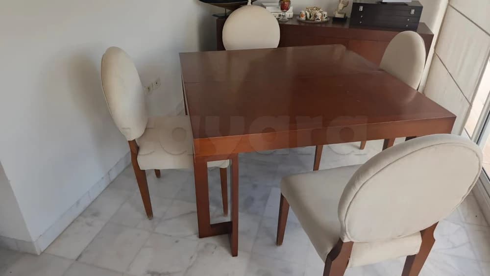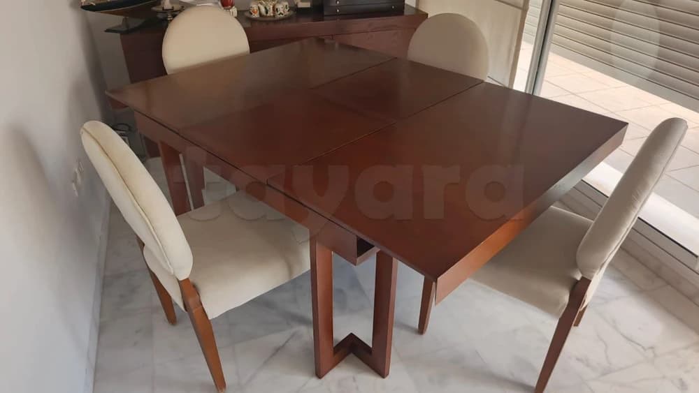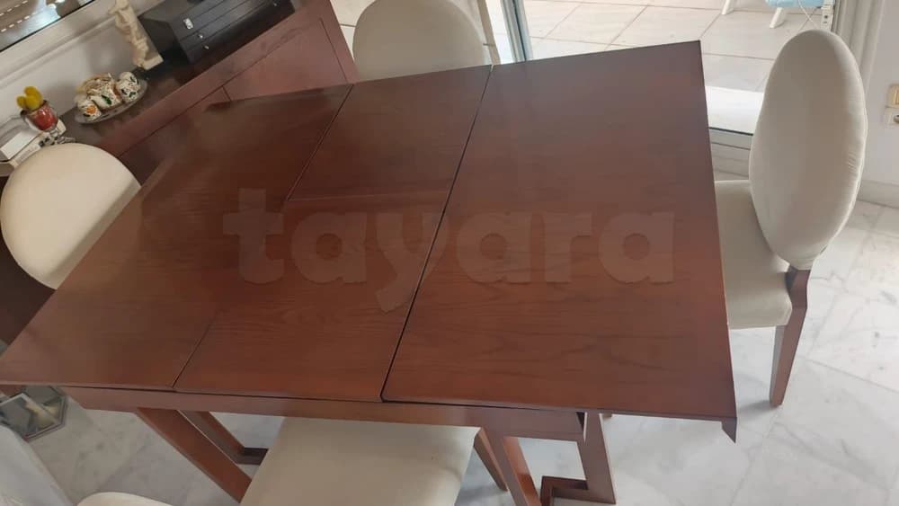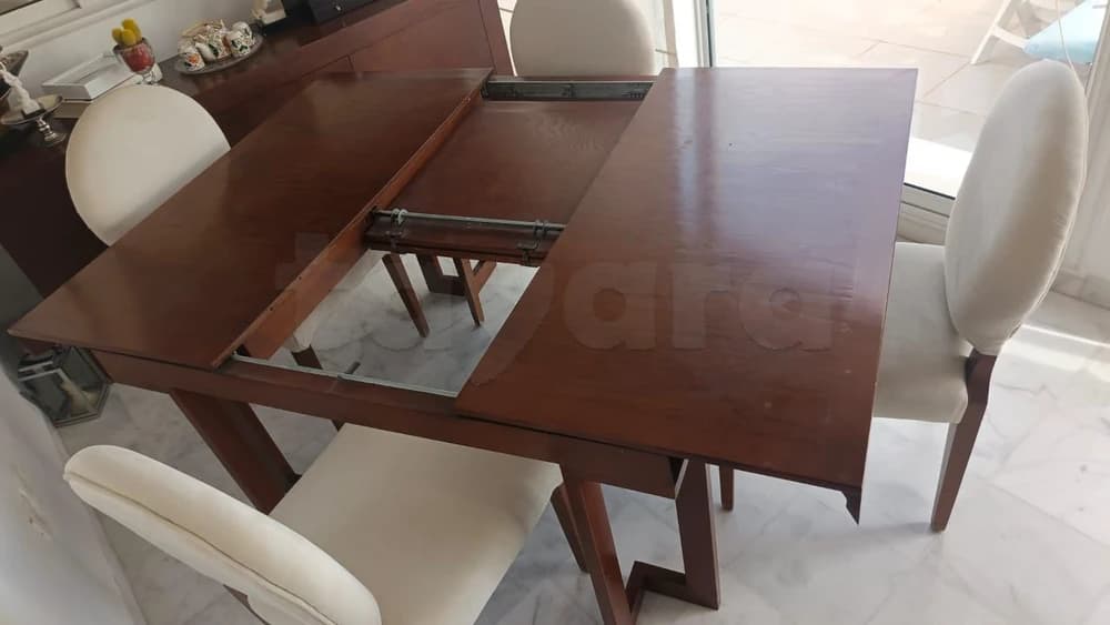 -Une table extensible (avec mécanisme facile d'extension) dimensions 130/130 cm en mode fermé et 130/180 cm en mode extensible ( hauteur standard 77cm)