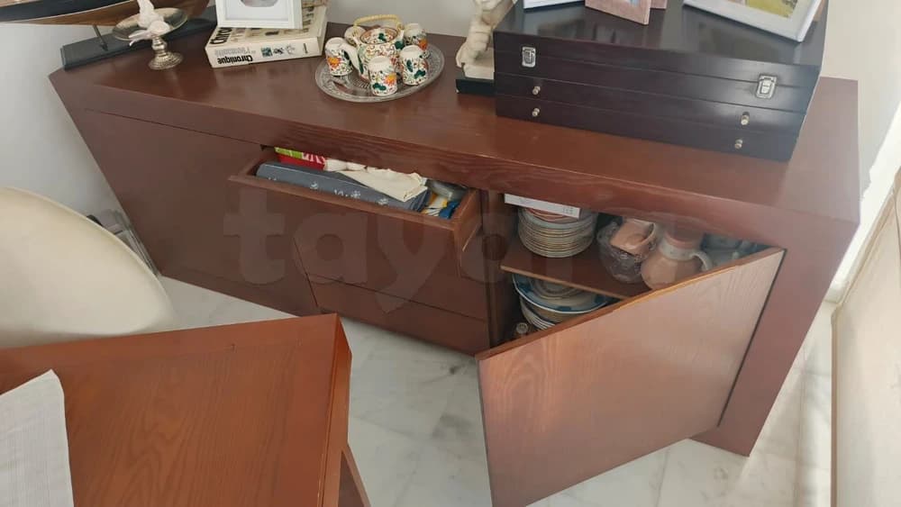 - Un bahut avec fermeture ouvrant et tiroirs système "push", largeur 2 mètre/hauteur 80 cm/profondeur 50cm