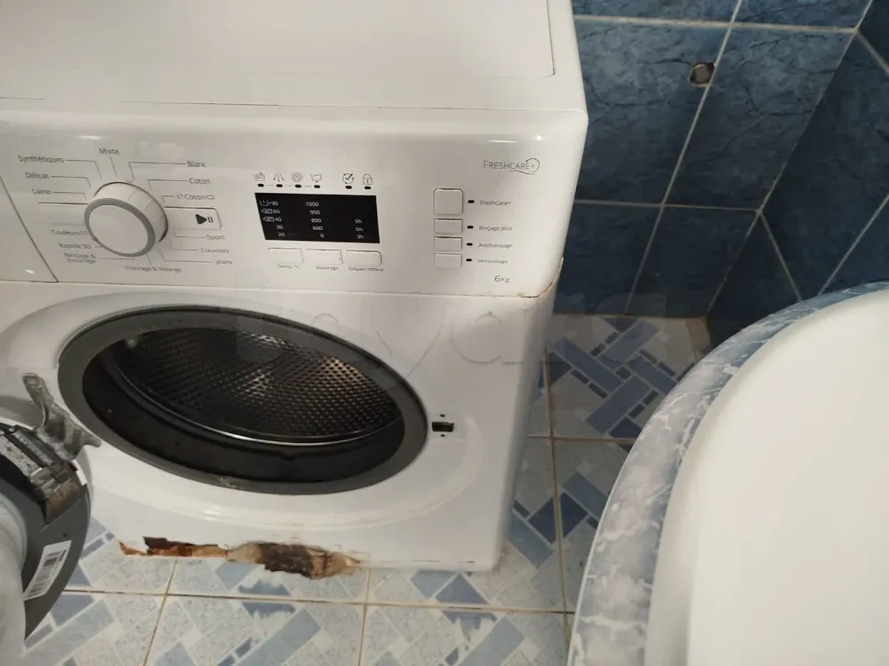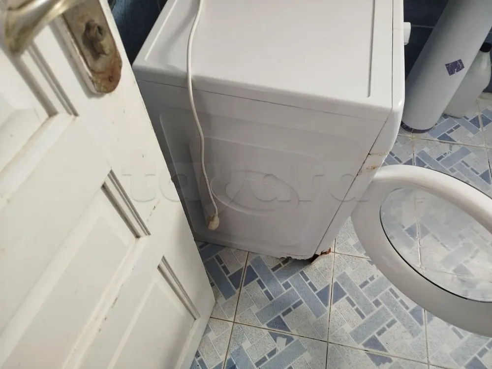 آلة غسيل من نوع ويربول تعمل بشكل جيد في الغسيل، الشطف، العصر، تفريغ الماء وإعادة التعبئة، وجميع وظائفها سليمة بالكامل.