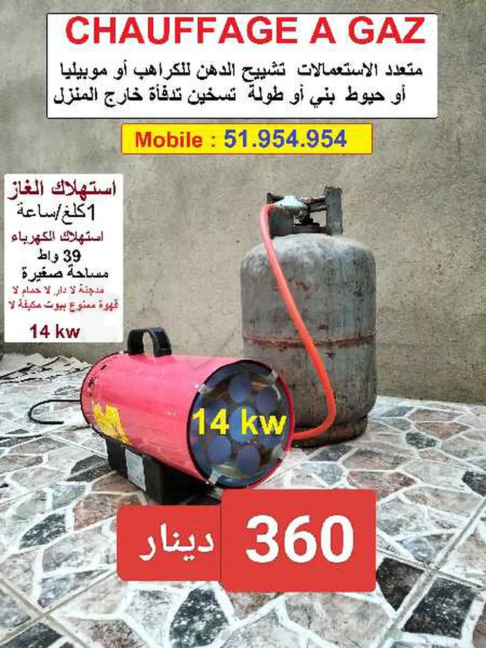 سخان ماهوش متاع دار الدبوزة موش للبيع يستعملوه في مساحة صغيرة لتسخين أو تدفأة أو تشييح برودي / ڨاراج طولة ودهينة / تشييح الحيوط بعد الدهن / يسخن و ينحي الندى مالبيوت فيه مروحة باش يوزع السخانة متعدد الإستعمالات