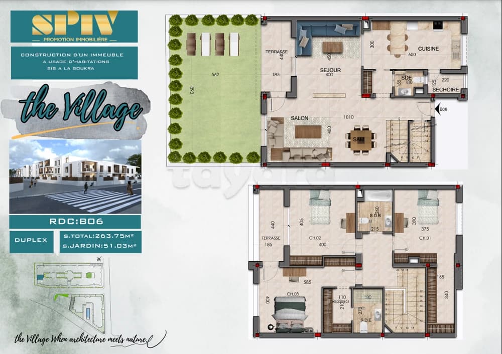 Découvrez ce duplex S+3 situé dans la résidence The Village, offrant un cadre de vie moderne, spacieux et confortable. D’une superficie généreuse et bénéficiant d’un jardin privatif, ce bien se distingue par ses finitions haut de gamme et son aménagement soigné.