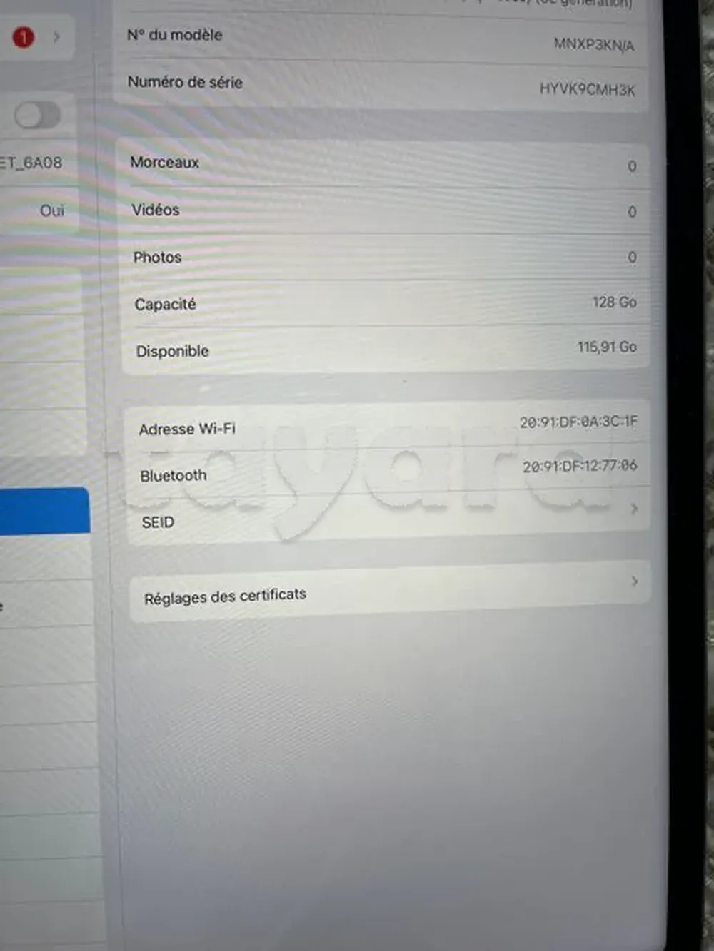 m2 128G wifi état neuf comme cacheté peu servi sous garantie avec facture et son chargeur prix 3250dt tel