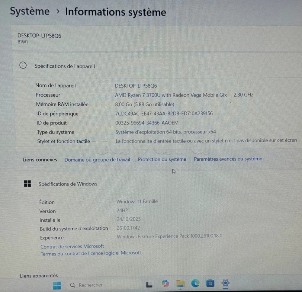 ⭐️ Processeur : AMD Ryzen 7 3700U