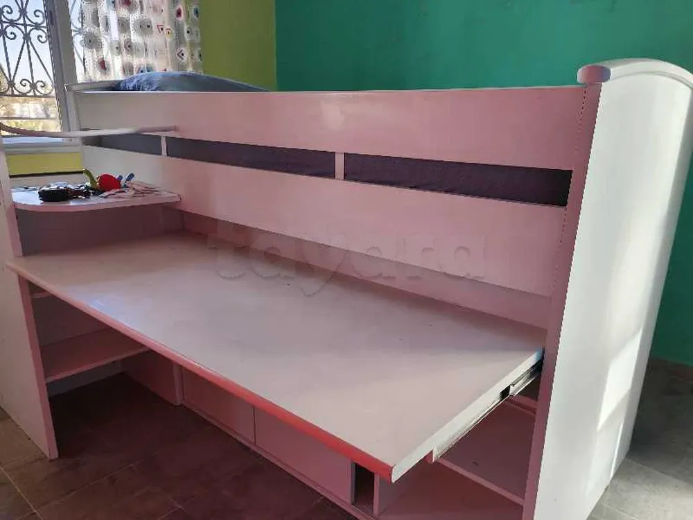 Vends lit 90 cm enfant. Combiné. Avec bureau ( rangement sous bureau) et commode intégrées. Très pratique pour les petits espaces. Très fonctionnel. Marque Gauthier.