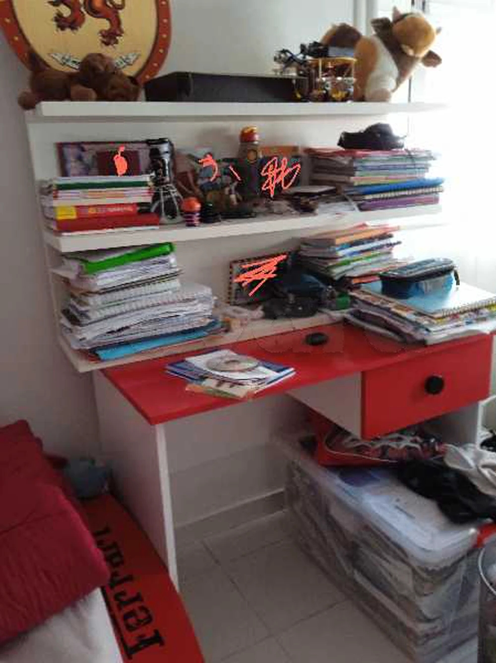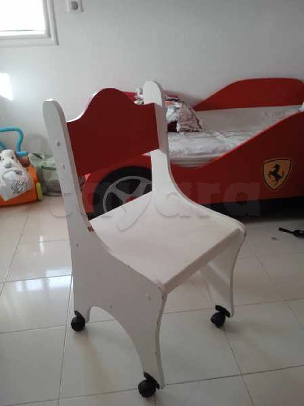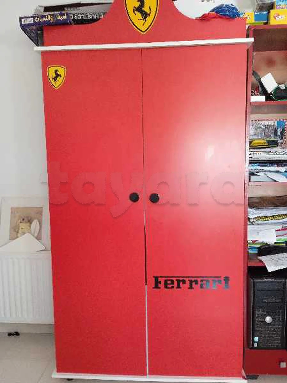 un lits et une armoire et un bureau avec une chaise de thème Ferrari