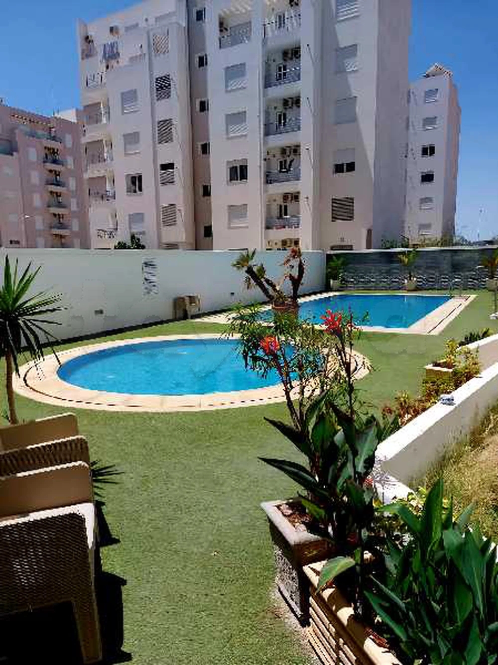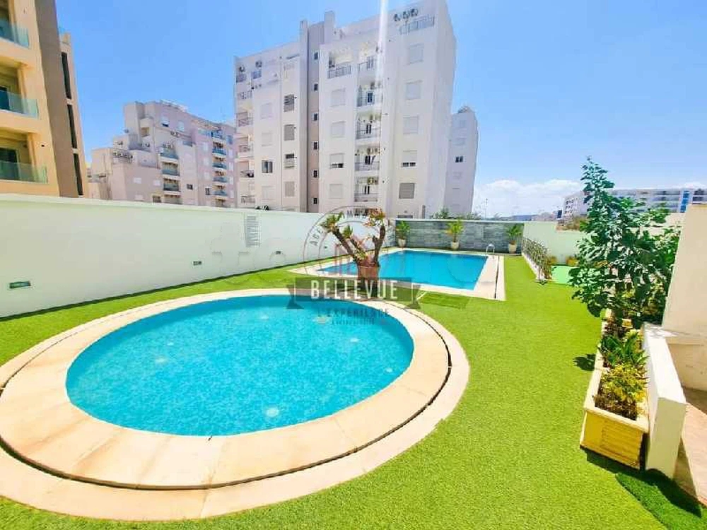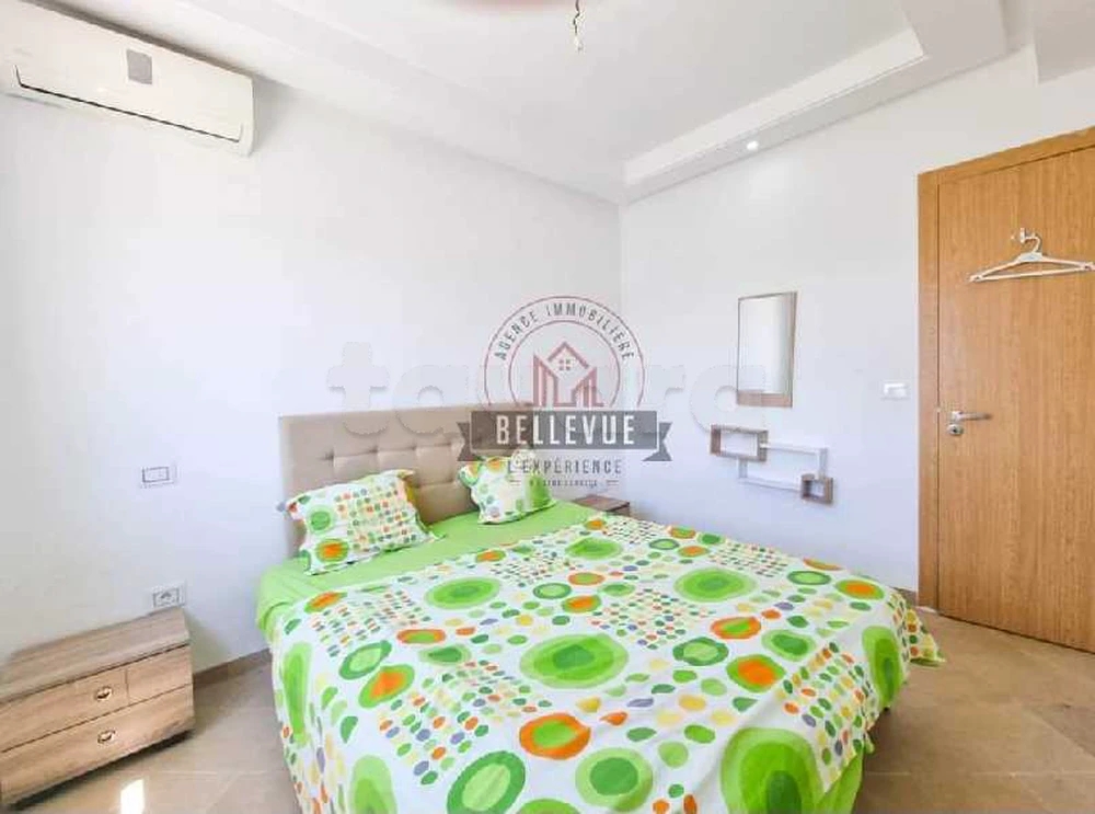 Situé à Cité Wafa AFH 2 - Mrezga, Nabeul, dans une résidence sécurisée avec piscine collective. Il se compose d'un salon lumineux, de deux chambres, d'une cuisine et d'une salle d'eau.