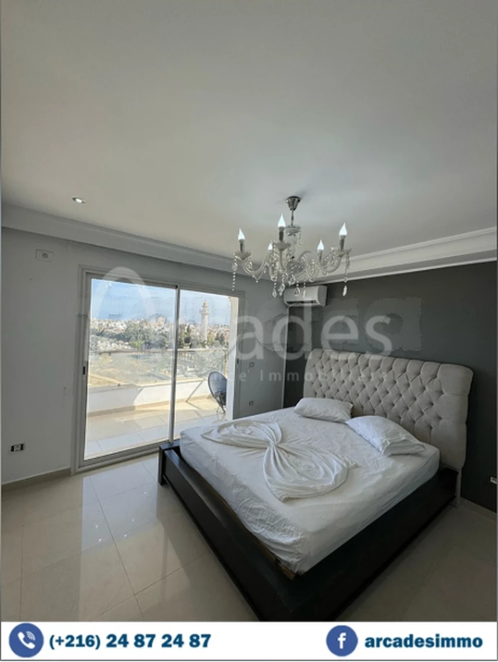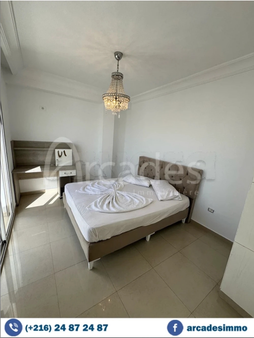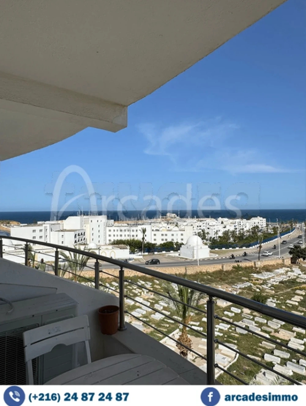 Agence Les Arcades met en location 🔑 pour les vacances un appartement de type s+3,situé dans un immeuble sécurisé à la Falaise de Monastir près complexe touristique Marina .