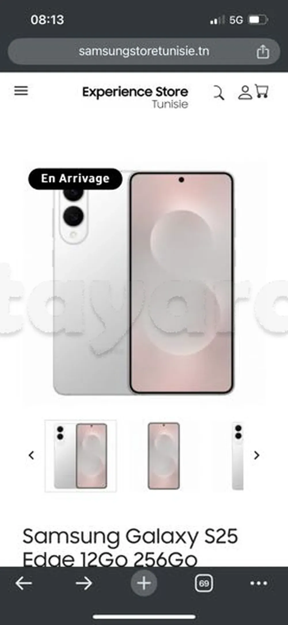 Je mets en vente un Samsung s25 edge cachete importé de la France. stockage 256go et ram12 go caméra derrière 200Mo. enregistrement effectué sur le site sajelni