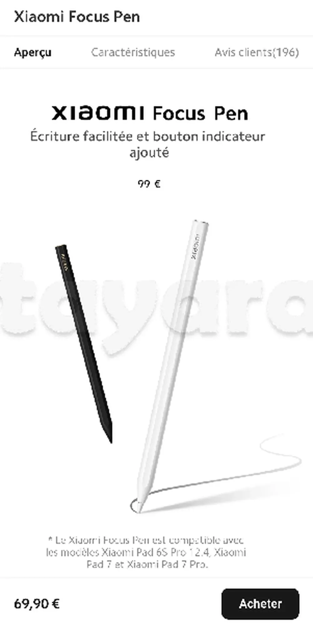 Le Xiaomi Focus Pen est compatible avec les modèles Xiaomi Pad 6S Pro 12.4, Xiaomi Pad 7 et Xiaomi Pad 7 Pro.