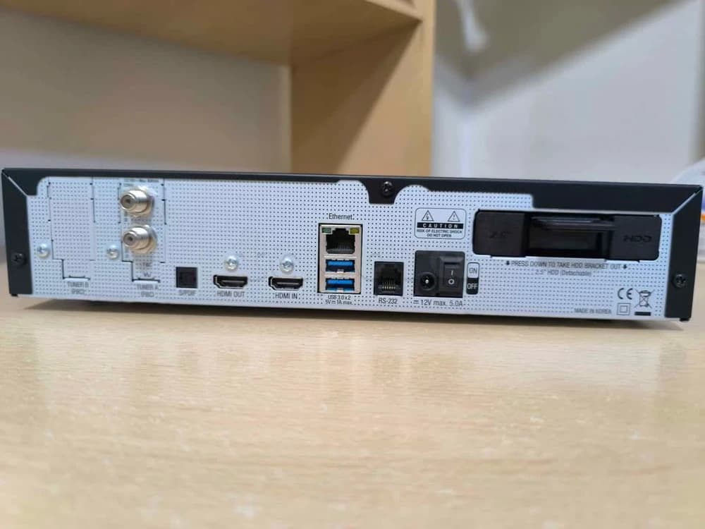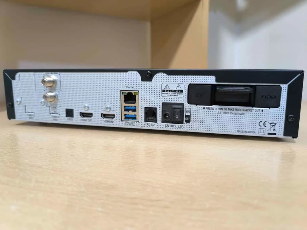 Le panneau avant et l'arrière sont des ports USB 3.0, le back-end est une connexion Gigabit Ethernet et une sortie optique. La base de ce récepteur est un processeur quad-core avec 2,1 GHz, 2 Go de RAM et 4 Go de Flash. Il a également deux disques durs (SATA 2,5 pouces). De lecteurs multimédias, support pour Kodi, YouTube, Samba, DLNA. Il y aura une application mobile pour iOS et Android. Le changement de programme est très rapide, moins d'une seconde.